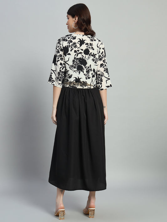 Floral black & White Flared Dress