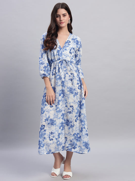 Women Blue Floral Tied Slit Dress