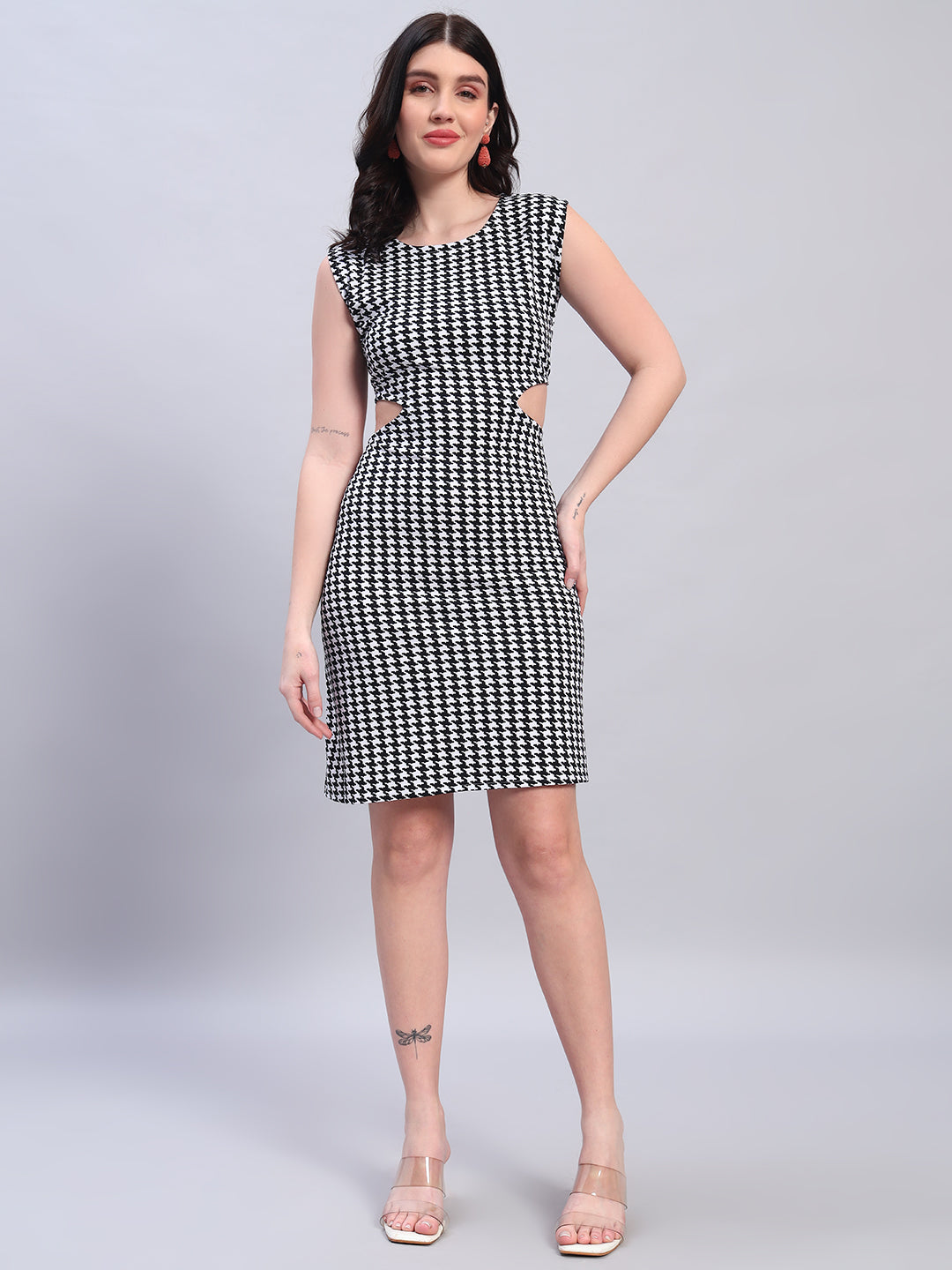 Elevate your style with our Women Striped Black fited Dress. The unique flare silhouette make this dress a must-have for any wardrobe. Dress it up for a night out or wear it casually for a day at the office. Versatile and chic, this dress is perfect for any occasion.