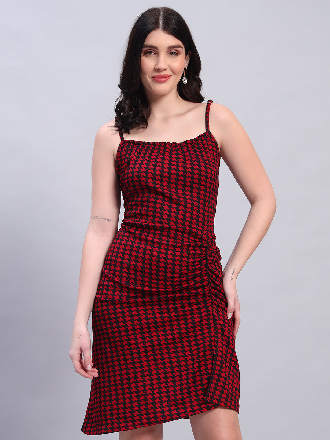 Elevate your style with our Women Striped Red fited Dress. The unique flare silhouette make this dress a must-have for any wardrobe. Dress it up for a night out or wear it casually for a day at the office. Versatile and chic, this dress is perfect for any occasion.