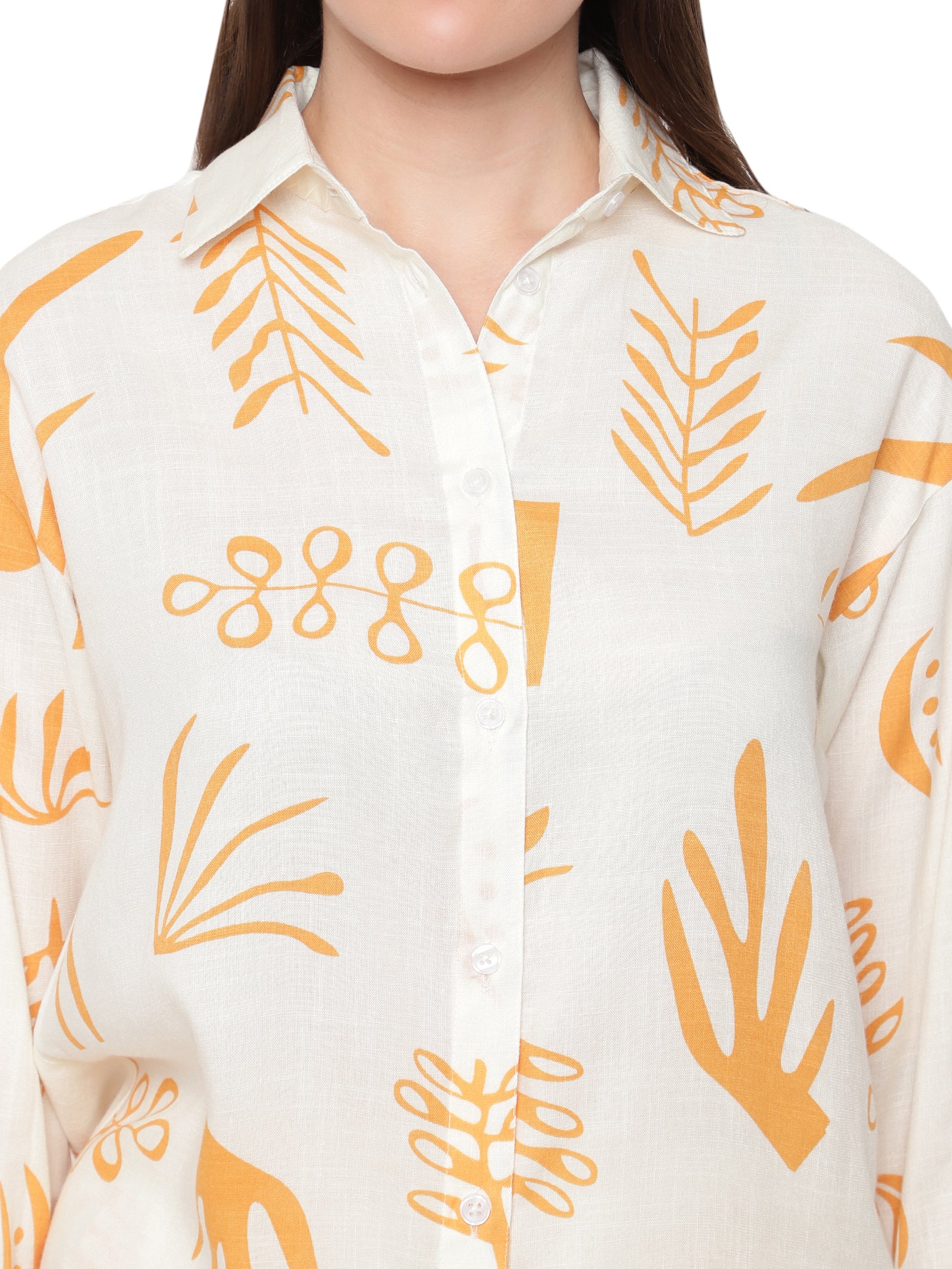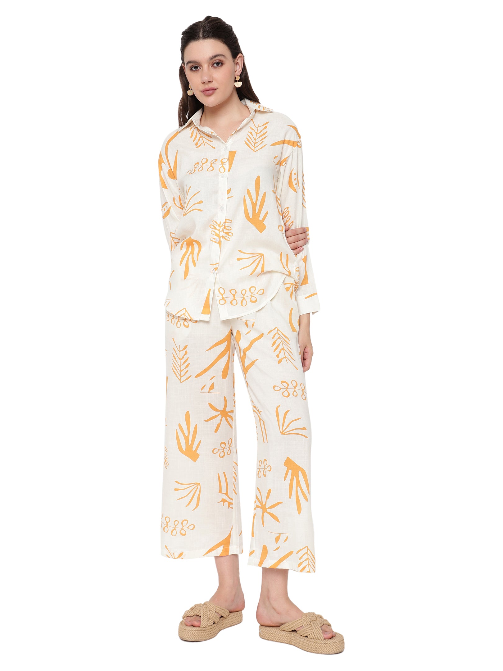 Women White & Yellow Printed Shirt Plazzo Co-Ords